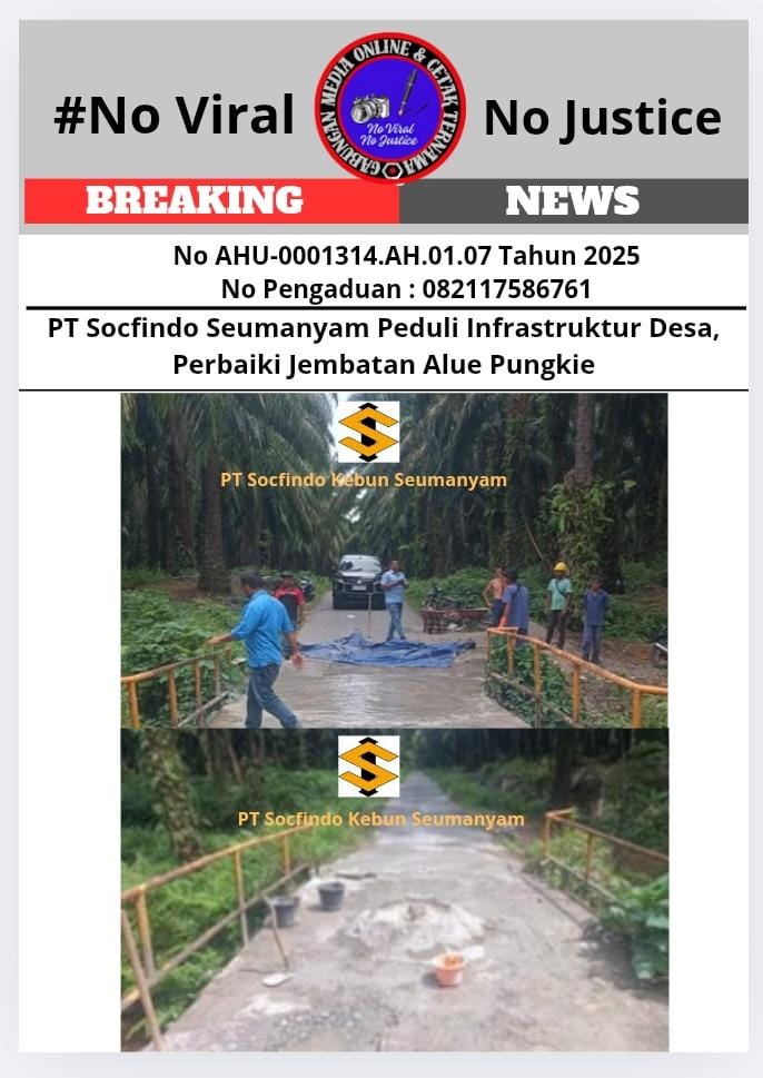 Perbaikan jembatan ini merupakan respons cepat PT Socfindo Seumanyam terhadap permintaan masyarakat Desa Alue Pungkie, yang disampaikan melalui tokoh masyarakat setempat, Sulaiman Daud, yang juga mantan anggota DPRK Nagan Raya.