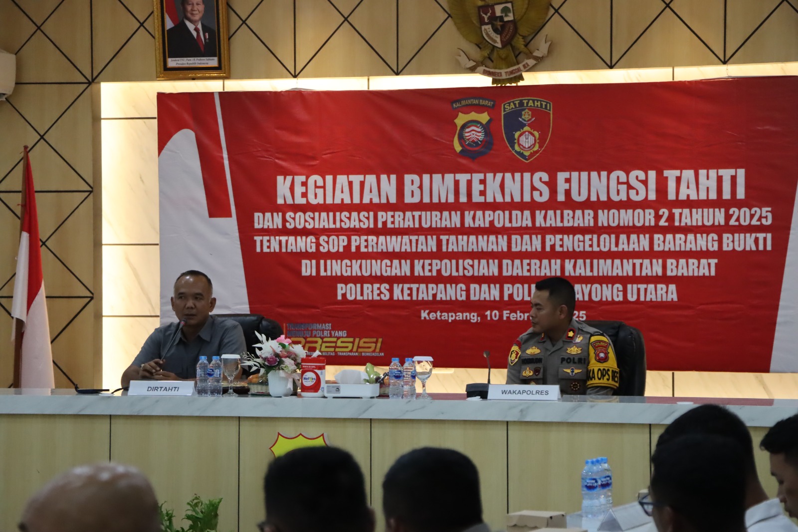 Sementara itu, Kapolres Ketapang AKBP Muhammad Harris, S.H., S.I.K., M.I.K., CPHR melalui Wakapolres Ketapang Kompol Hoerrudin, S.I.K., M.H. menyampaikan bahwa kegiatan Binteknis Fungsi Tahti dan sosialisasi Peraturan Kapolda Kalbar Nomor 2 Tahun 2025 ini sangat penting untuk dipahami oleh Kasat Tahti maupun para penyidik, agar seluruh proses penanganan tahanan dan barang bukti dapat berjalan sesuai dengan SOP yang berlaku.